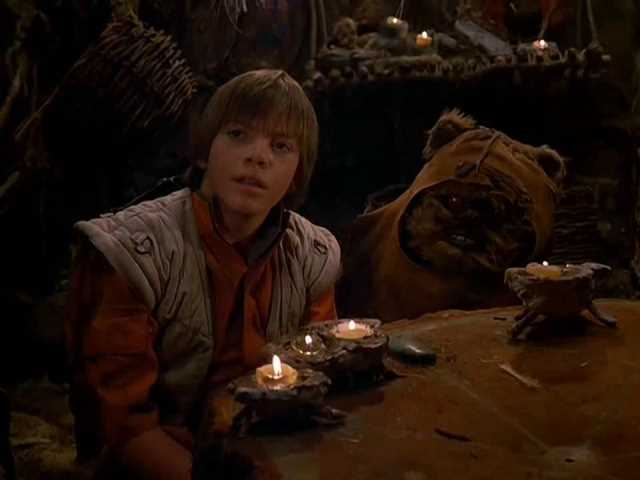 En la luna de Endor unas extrañas criaturas peludas pequeñas y simpáticas llamadas Ewoks descubren una nave espacial que ha sufrido un accidente.Después de un aterrizaje forzoso de la nave en la que viajaban con sus padres,Mace y su hermana Cindel son recogidos por los Ewoks,que ayudarán a los jovencitos a encontrar a sus padres,para lo que contarán con la ayuda del brujo del poblado.